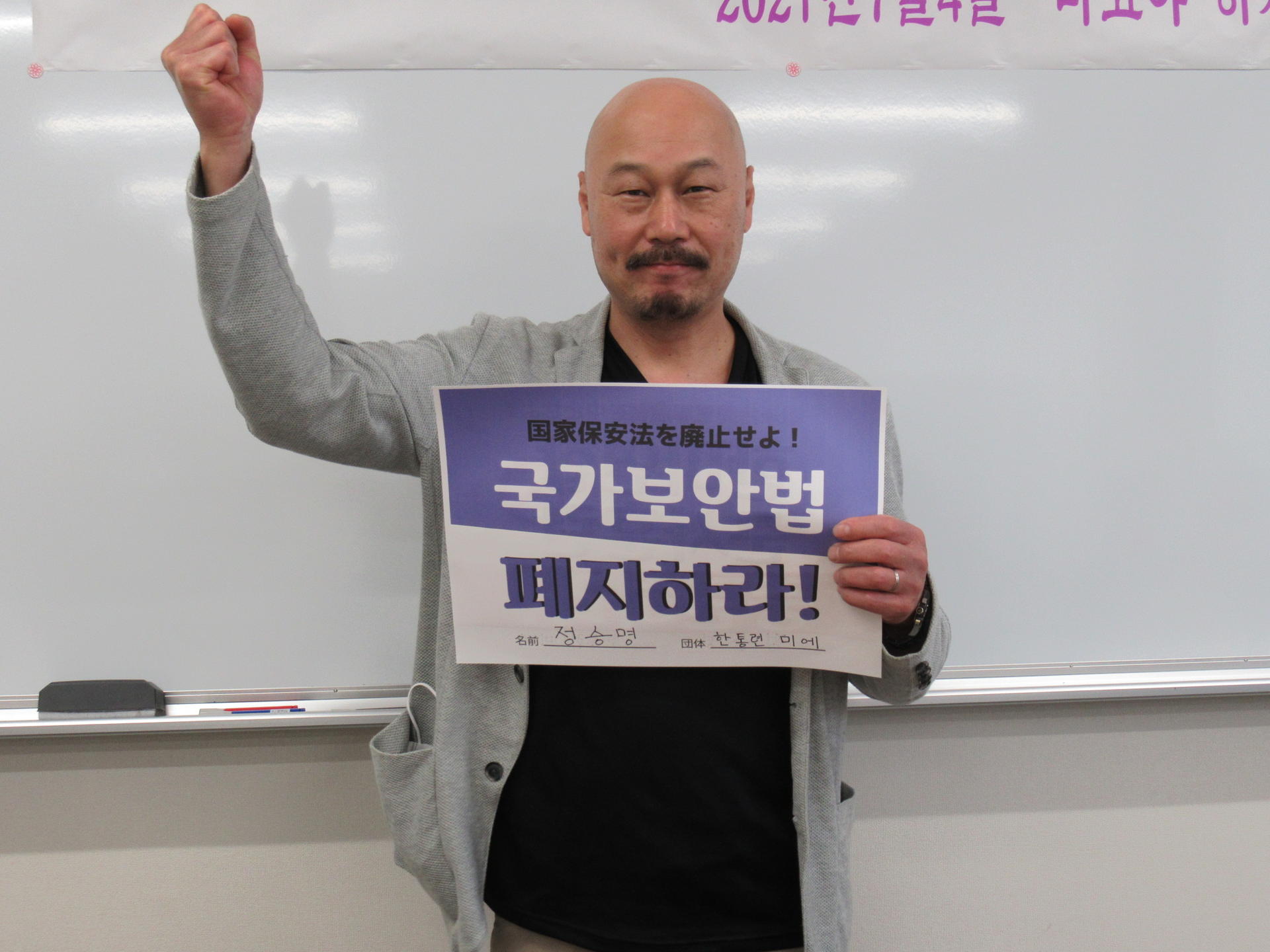국가보안법 폐지를 요구하는 손피켓 어필(재일 한통련)