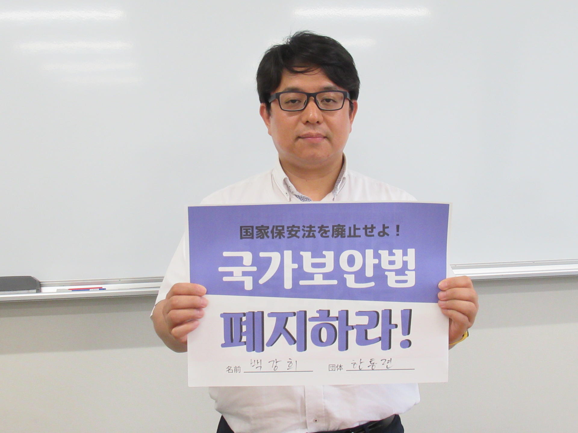 국가보안법 폐지를 요구하는 손피켓 어필(재일 한통련)