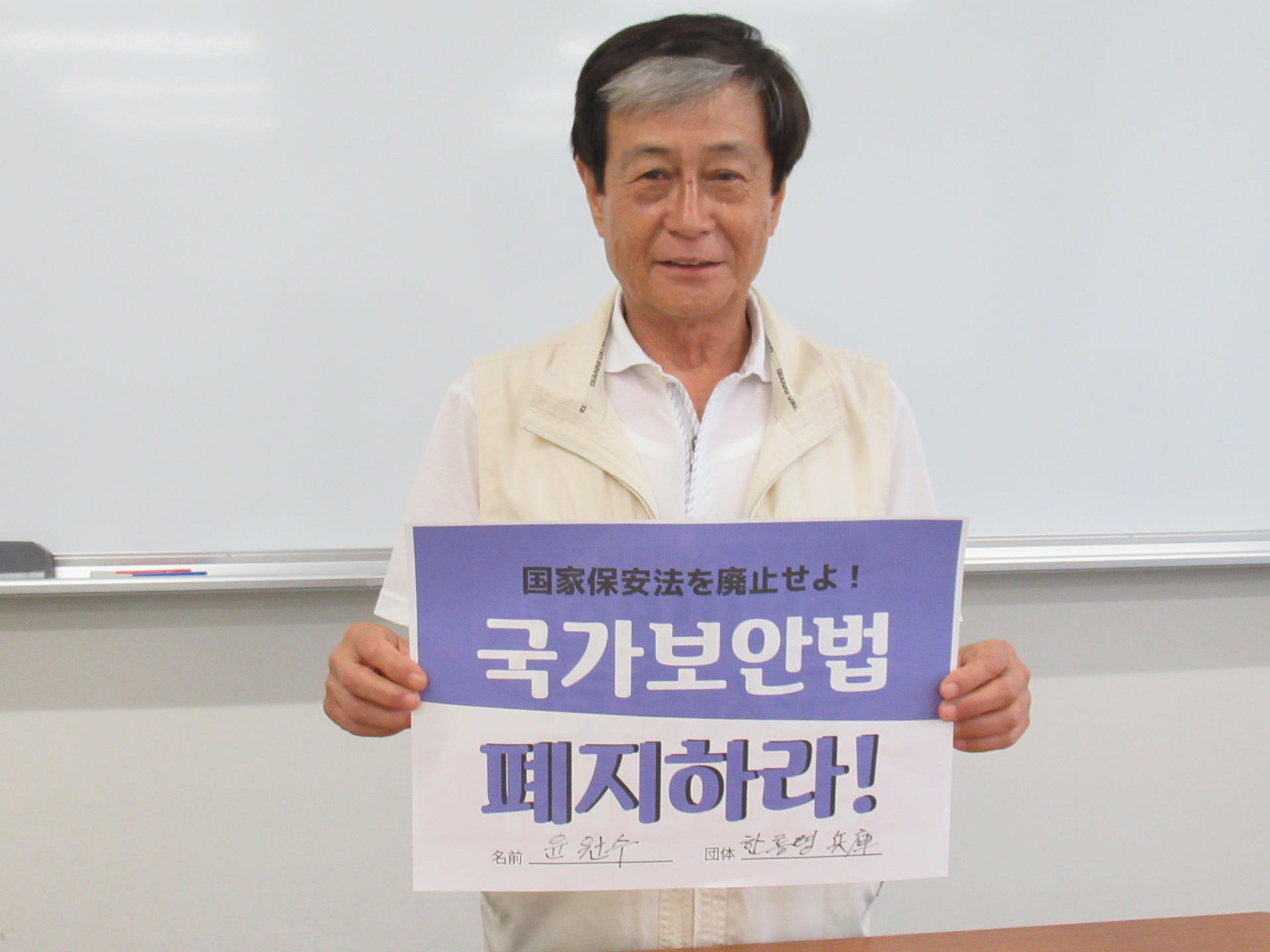 국가보안법 폐지를 요구하는 손피켓 어필(재일 한청)