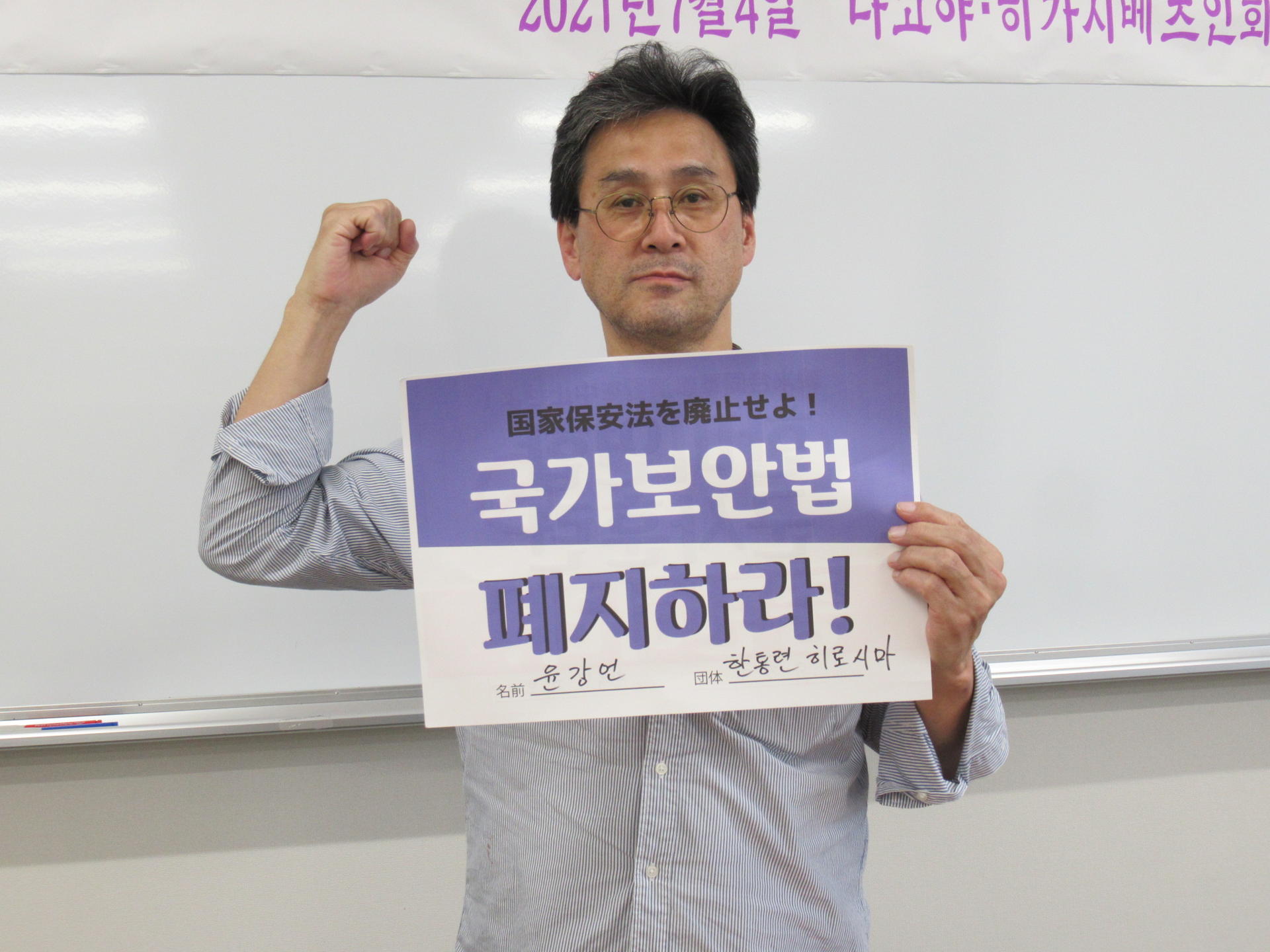 국가보안법 폐지를 요구하는 손피켓 어필(재일 한통련)