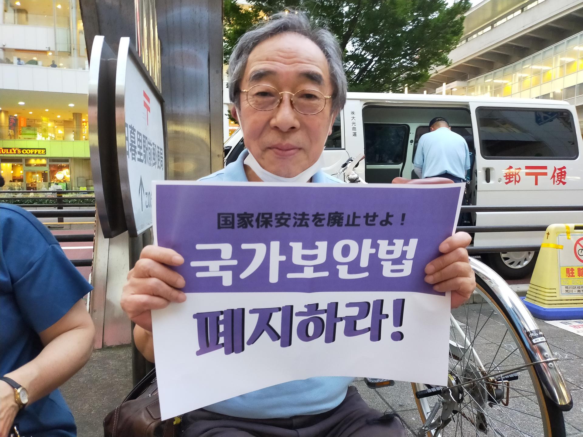 국가보안법 폐지를 요구하는 손피켓 어필(재일 한통련)