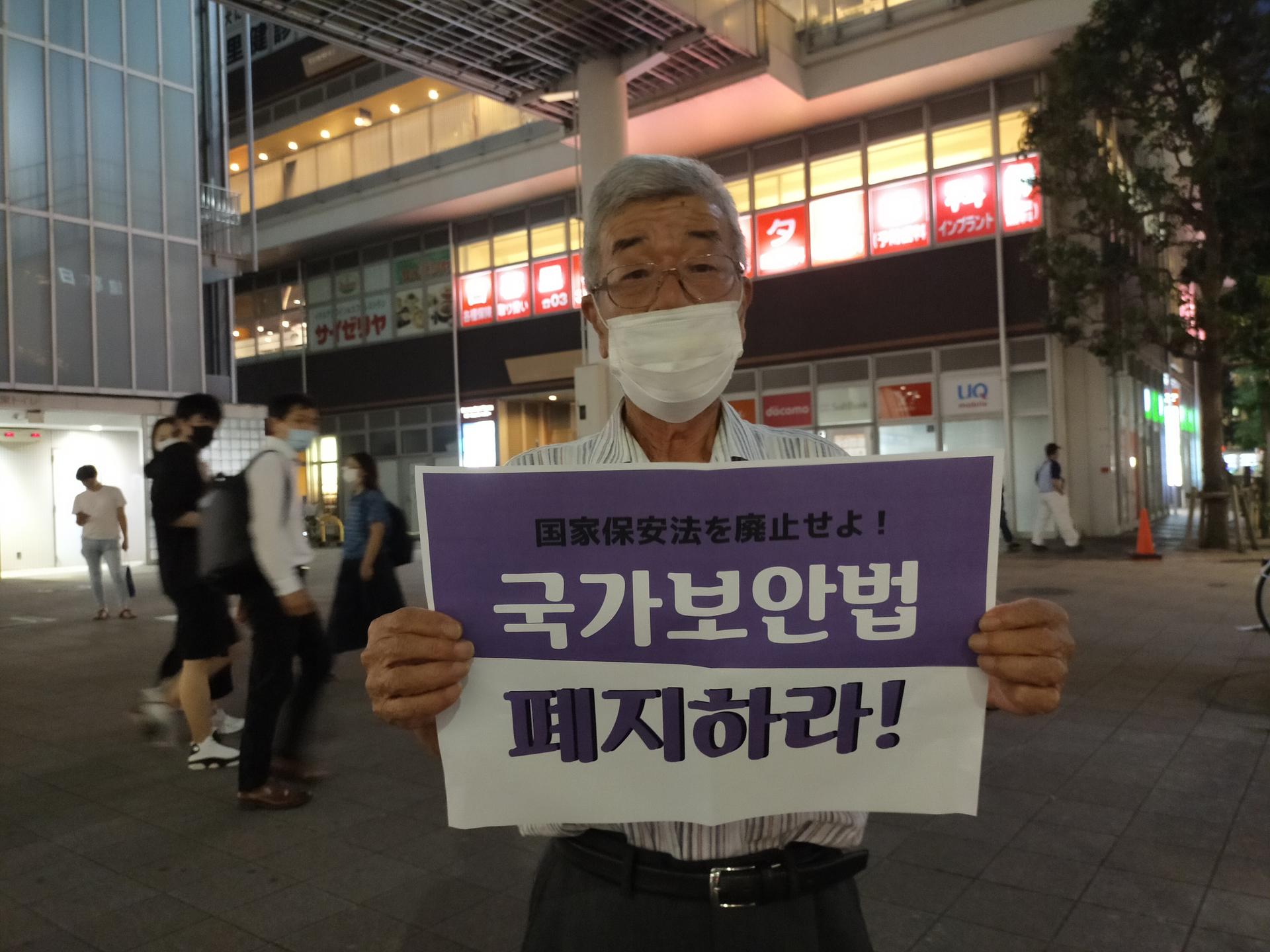 국가보안법 폐지를 요구하는 손피켓 어필(재일 한통련)