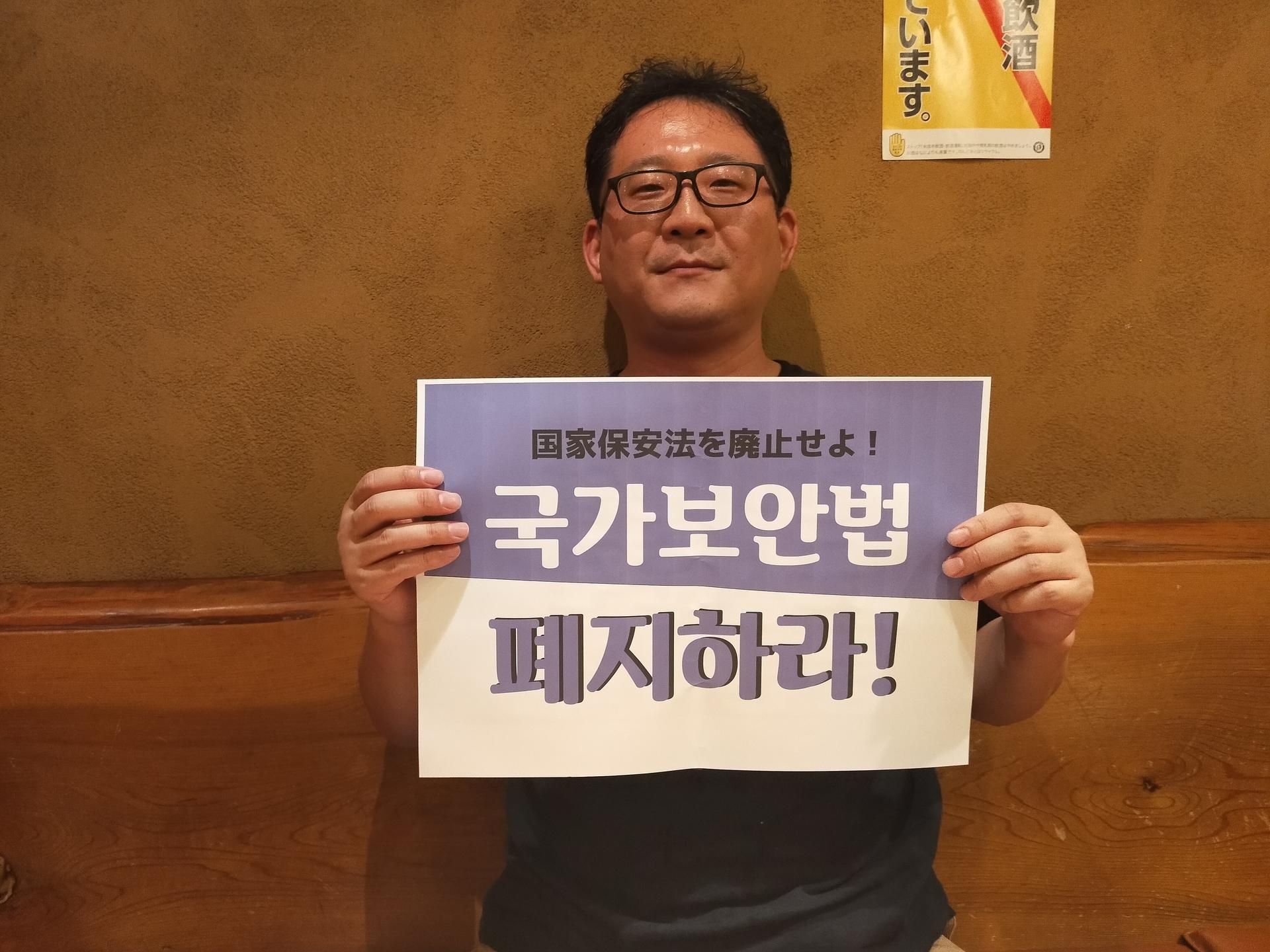 국가보안법 폐지를 요구하는 손피켓 어필(재일 한통련)