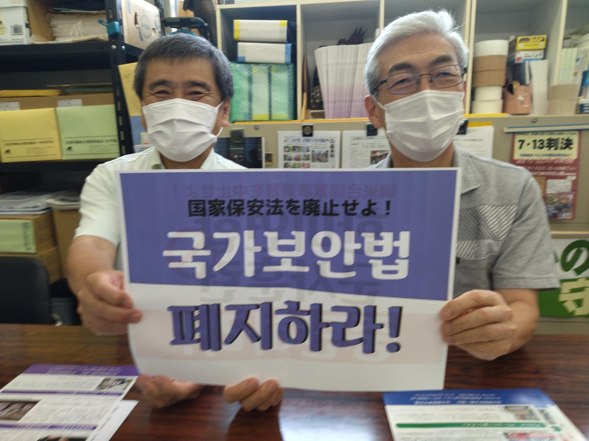 국가보안법 폐지를 요구하는 손피켓 어필(재일 한통련)