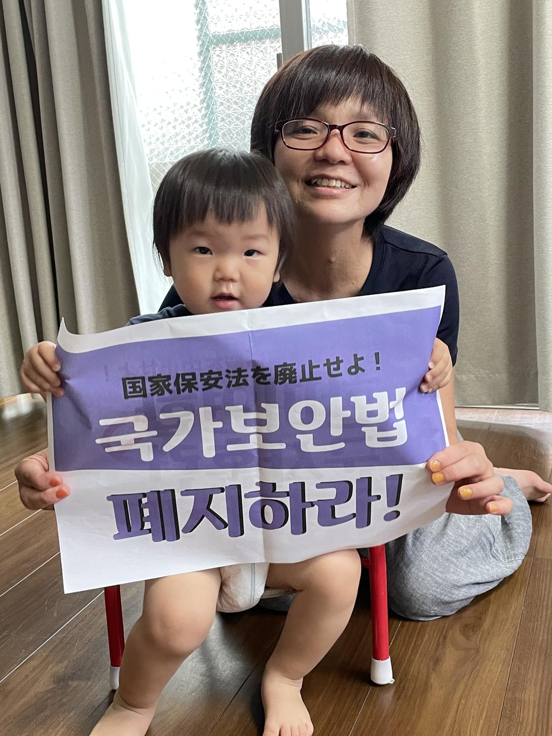 국가보안법 폐지를 요구하는 손피켓 어필(재일 한통련)