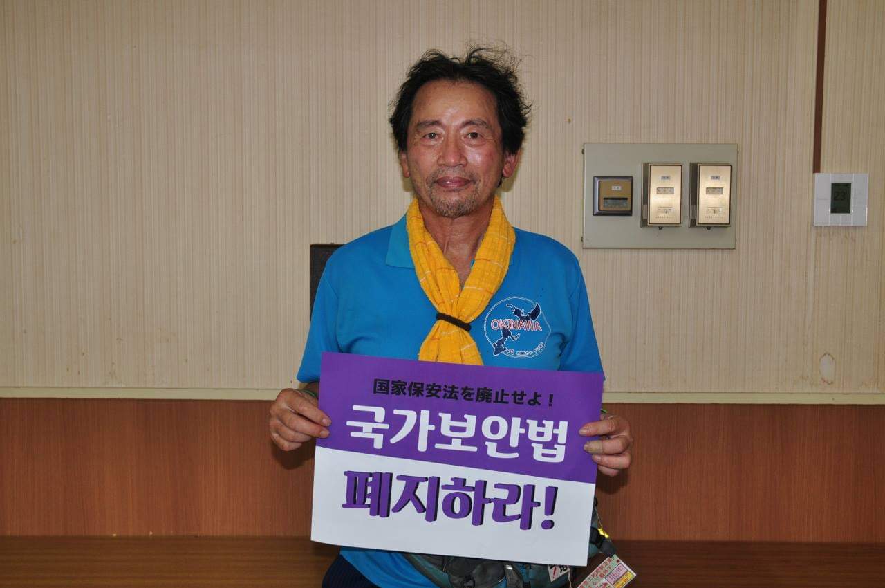 국가보안법 폐지를 요구하는 손피켓 어필(재일 한통련)