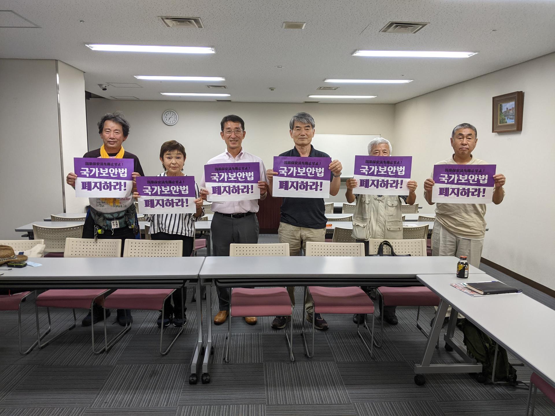 국가보안법 폐지를 요구하는 손피켓 어필(재일 한통련)