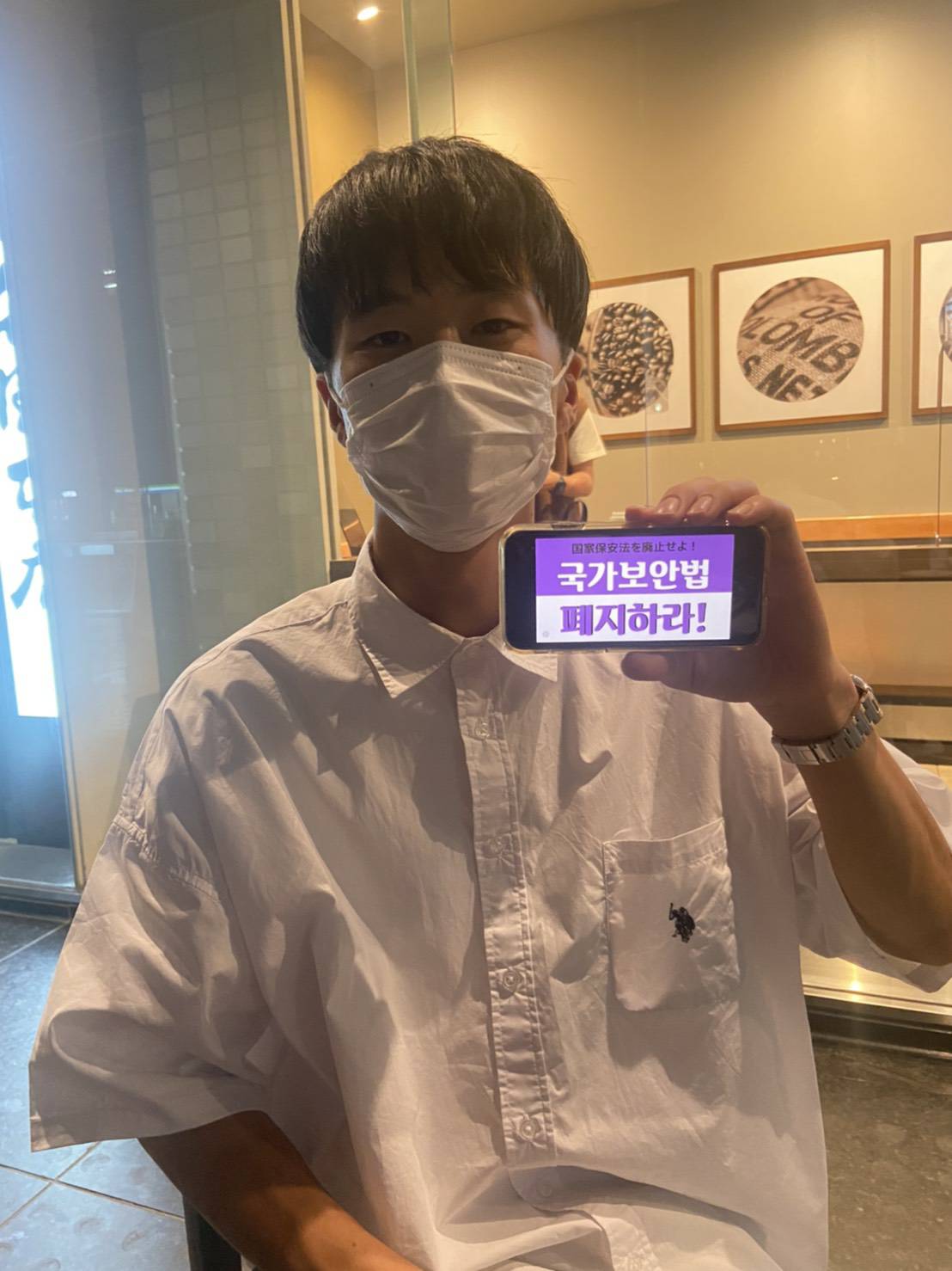 국가보안법 폐지를 요구하는 손피켓 어필(재일 한청)