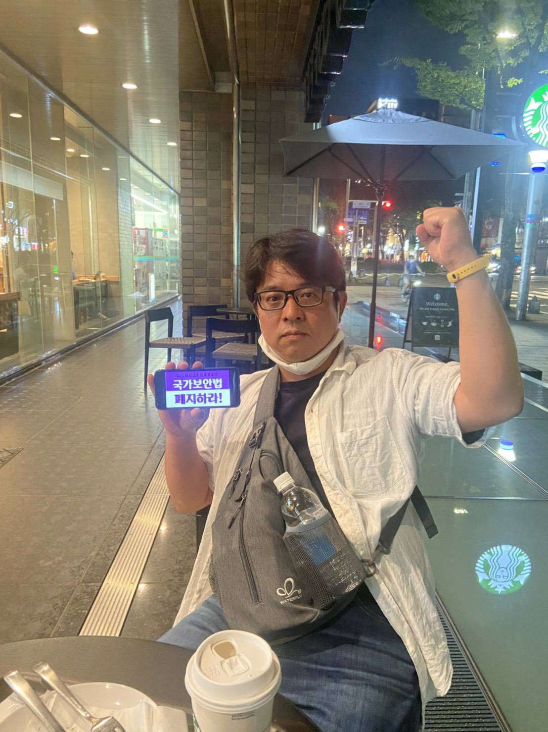 국가보안법 폐지를 요구하는 손피켓 어필(재일 한청)