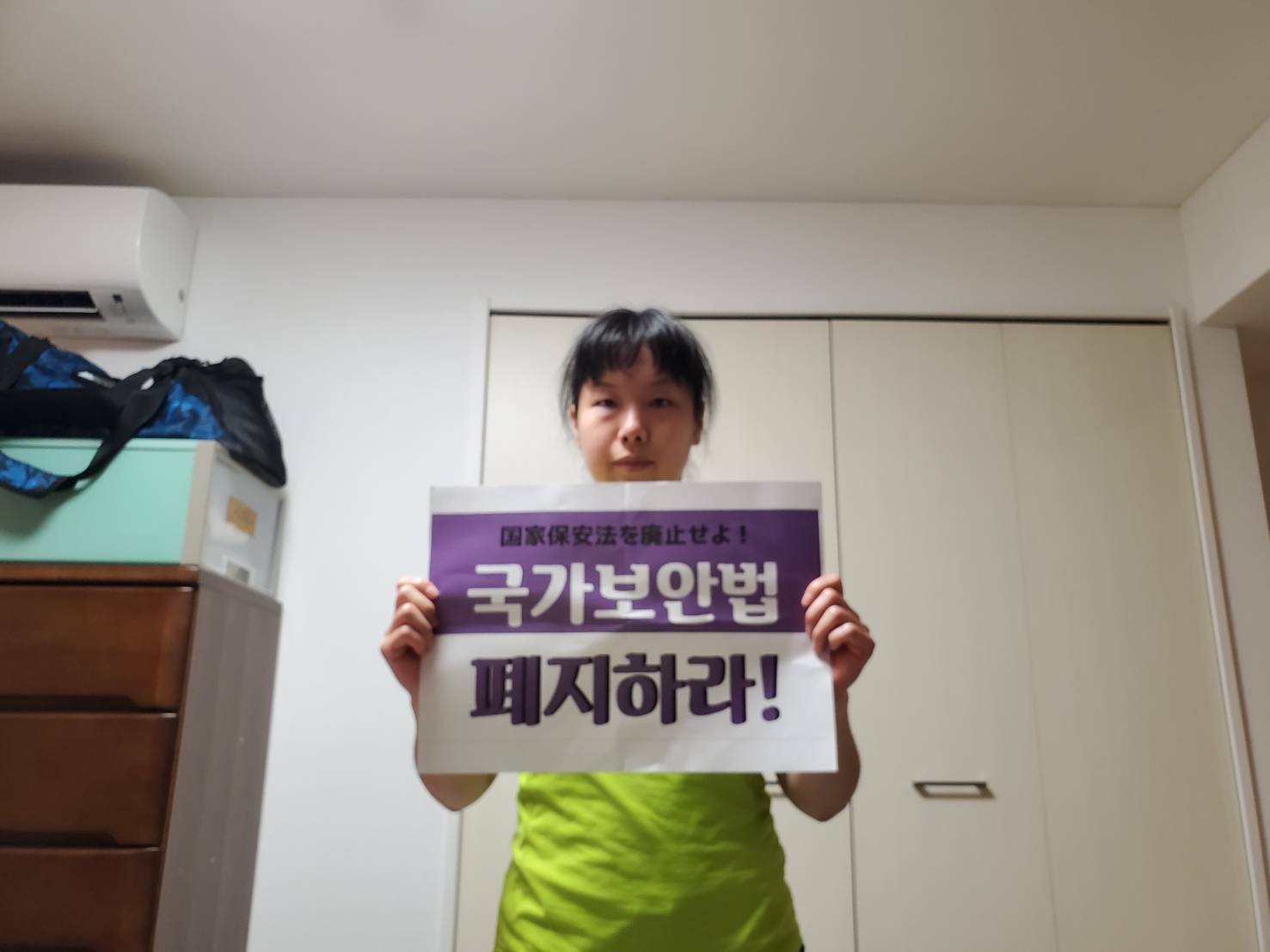 국가보안법 폐지를 요구하는 손피켓 어필(재일 한청)