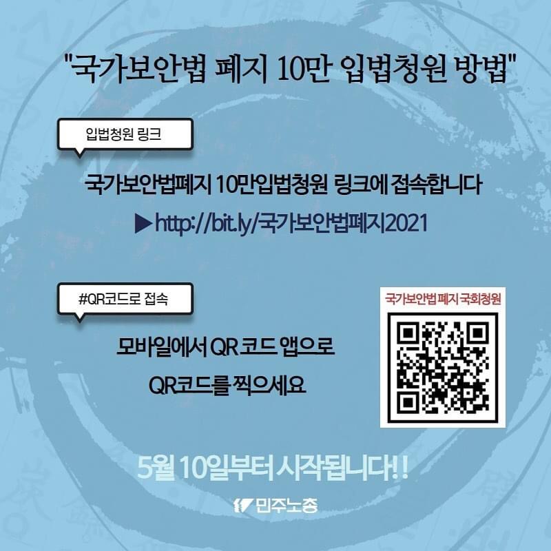 이제 5월 10일부터 국가보안법 폐지를 위한 10만 국회입법청원에 돌입합니다!