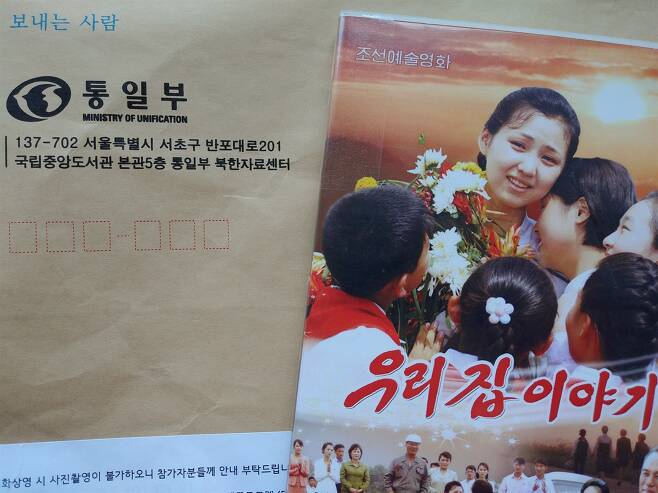 | ▲ 북한 예술 영화 <우리 집 이야기> 통일부 북한자료센터로부터 교내 상영 허가를 받았습니다. 내블통이 출범한 날, DVD를 담은 소포가 도착했습니다. |