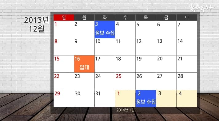 그런데 주목할 부분은 이런 정보를 입수한 날짜다. 이 문건에 따르면 김 씨에 대한 정보를 입수한 시기는 2013년 12월 3일. 그런데 김 씨가 입대한 날짜는 2013년 12월 16일이다. 기무사가 군에 입대하기 전 민간인이었던 김 씨에 대해 사찰하고 이를 첩보 입수라는 명목으로 윗선에 보고를 한 것이다. 기무사는 원래 군대 내의 방첩활동과 군사 기밀을 보호하는 활동을 하는 기관이다. 아직 민간인 신분이었던 김 씨를 용의자로 지칭하면서 사찰한 것은 기관의 설립 취지에 명백히 어긋나 위법의 소지가 있다.